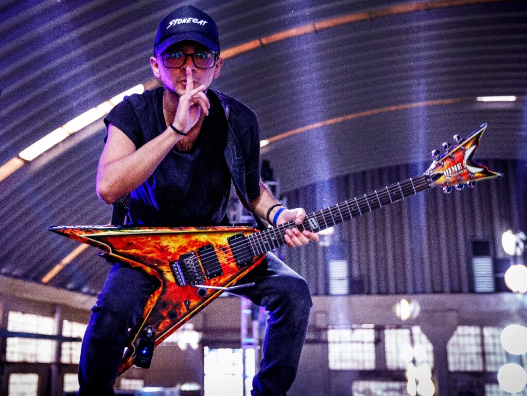 El paso de la guitarra al hardstyle no fue inmediato, pero cuando en 2014 descubrió este género, su vida dio un giro. “Ver a Coone fue un momento de revelación, me enamoré completamente del género”. Así, se adentró en el mundo de la música electrónica, comprando su primer controlador y comenzando su camino hacia lo que hoy es su característico show, donde la guitarra en vivo se fusiona con los potentes beats del hard dance. “Aprender a producir hardstyle fue uno de mis mayores retos, ya que es uno de los géneros más complicados”, confiesa. Sin embargo, su deseo de aportar algo diferente lo llevó a mezclar ambos mundos: “Noté que faltaba algo en la industria, un toque único que diera chispa al escenario”. El desafío no solo fue la producción, sino también la integración de la guitarra en un espectáculo de electrónica, algo que Stonecat hace con gran maestría, conectando su instrumento al mixer como si fuera un micrófono, sin importar las dificultades de producción. “Lo que me da adrenalina es saber que puedo cometer errores, pero también que puedo hacer un gran show si me concentro”.